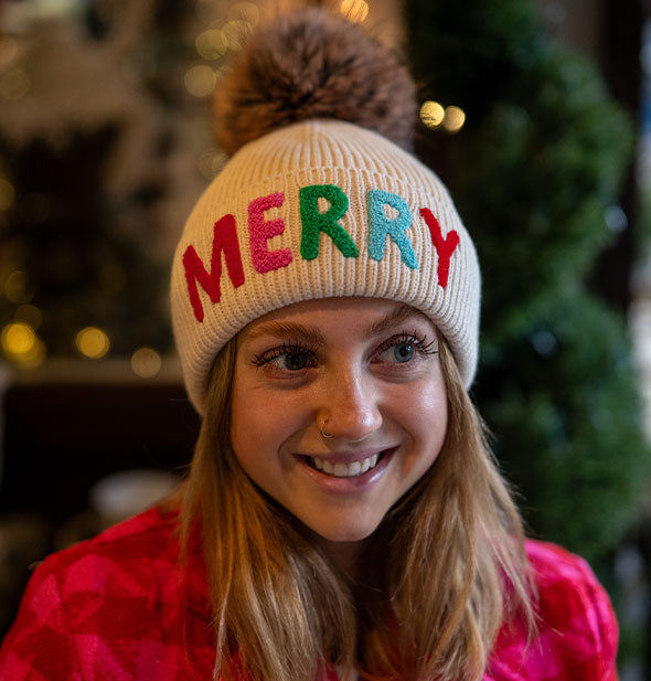 Merry Knit Pompom Beanie