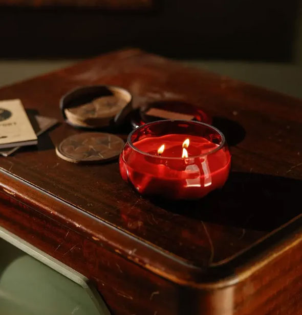 Bright and grounding, the 10 oz. Yuzu Woods candle combines sparkling citrus with woody evergreen notes. Encased in a striking red glass jar with lid, it balances energy and calm. After the wax has melted, the ruby-toned vessel transforms into a bold decorative accent. Crafted with a clean-burning soy wax blend and 100% cotton wick. No phthalates or formaldehyde. Cruelty-free and vegan.