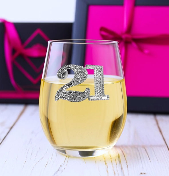 Crafted by hand with love in the heart of the Midwest—St. Louis, Missouri—this sparkling, sought-after wine glass is designed to uniquely represent individual personalities, celebrate moments in time, spark smiles and conversation, and to be treasured forever. Crafted with meticulous attention to detail, this glass features a beautifully etched “21” to celebrate your special milestone with flair. Holds 16 fl. oz. Hand wash only.