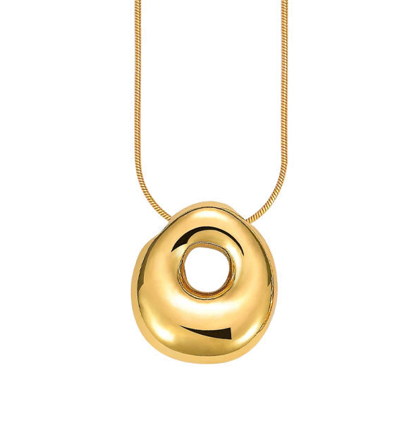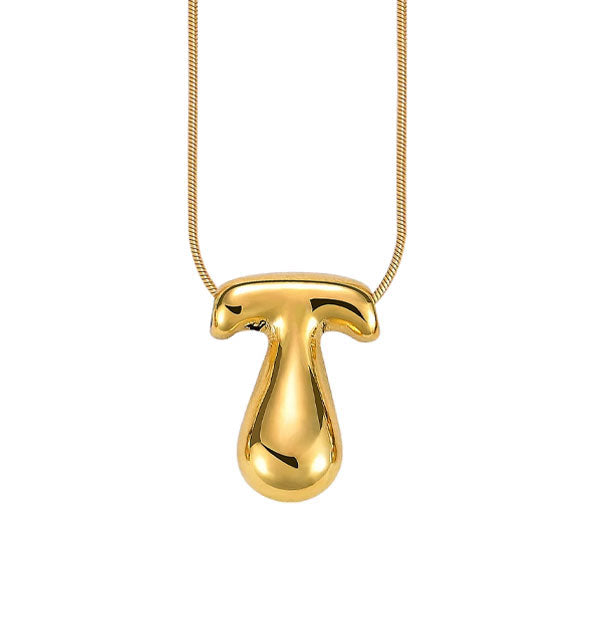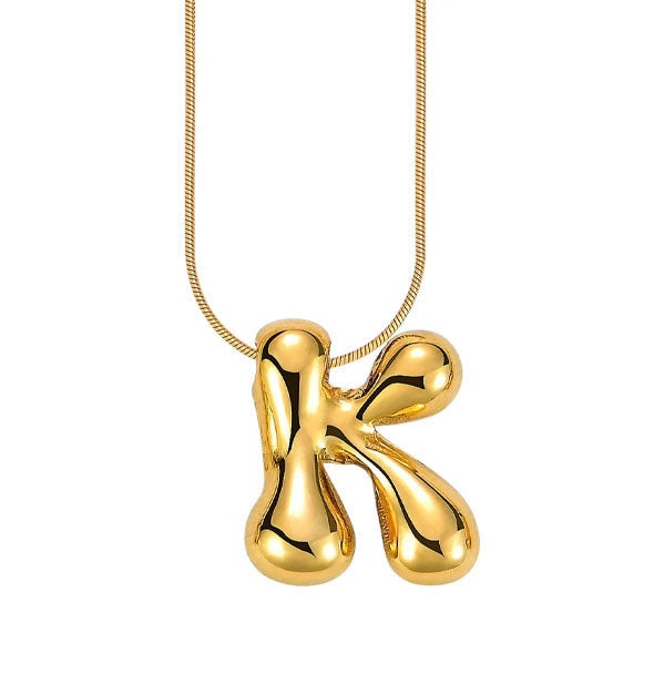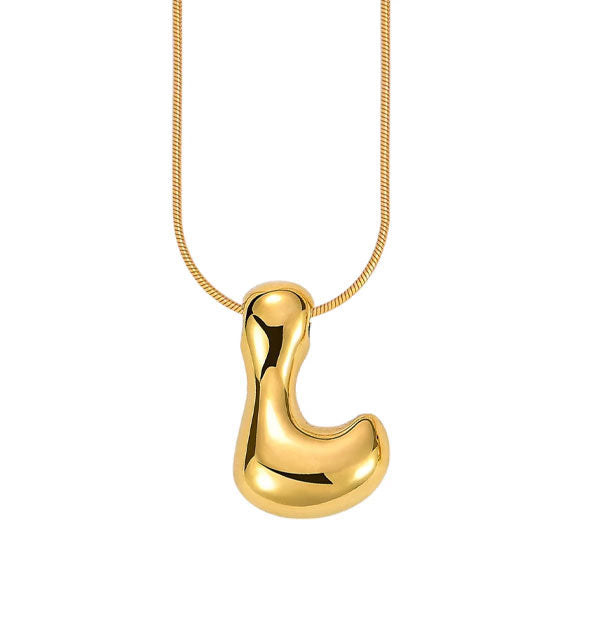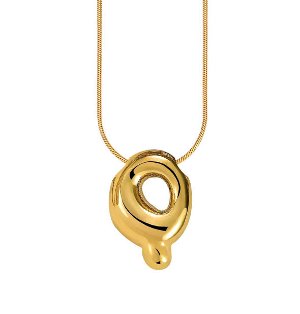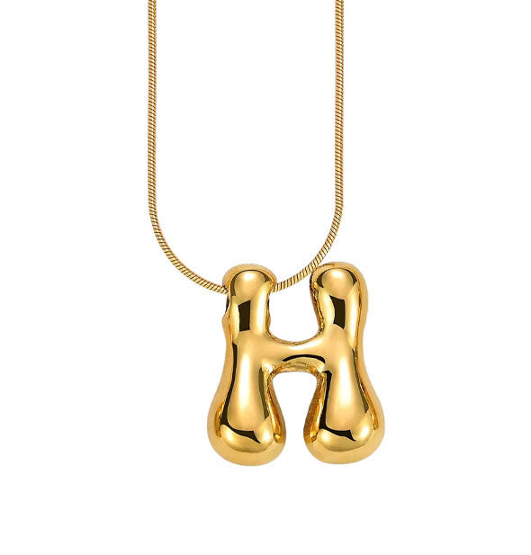 Add a playfully elegant touch to your jewelry collection with a radiant bubble letter necklace. This stunning piece features a rich gold finish and a bold, bulbous initial to showcase your individuality and identity, or that of a loved one. Cable chain measures 17.7” + 2” inches for adjustment. 18K gold-plated stainless steel. Handmade with love and mindfully manufactured.