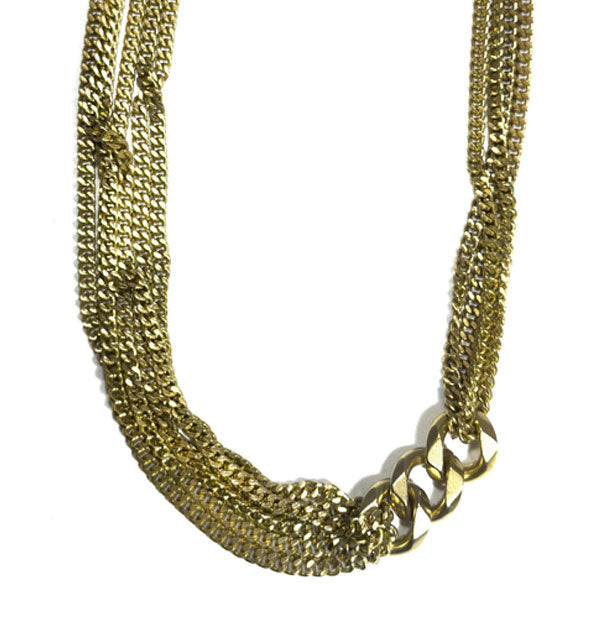 The Link features five strands of “Perfect Curb” 1.0 chain connected by three large curb chain links off-center for an artful asymmetrical look. Tarnish-resistant solid brass. Includes 2" extender. Thoughtfully designed and handmade to inspire your mood, shift your energy, and complete your style.