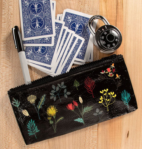 I bet you’ll use this pretty bag to hold all your pretty pens and pretty pencils and pretty bits and bobs—but it also works for plain old phone chargers, too. Pencil case is woven from 95% post-consumer material and measures 8.5”W x 4.25”H.